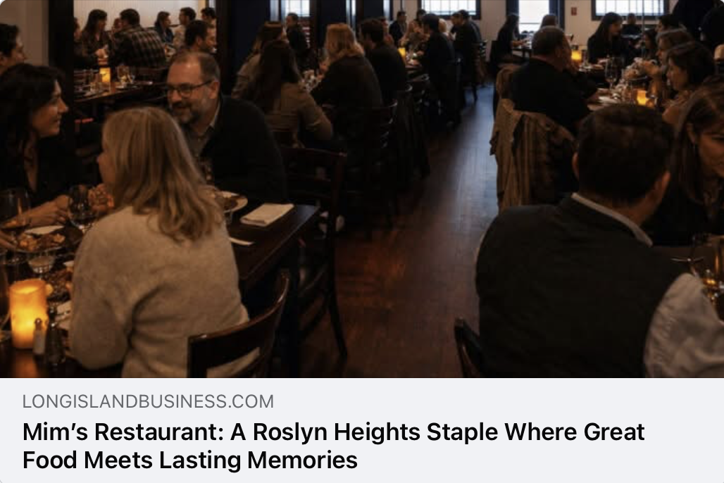 Mim’s is a Manhattan style bistro featuring warm friendly service, exquisite cuisine featuring the freshest fish, mouth watering steaks & chops, chicken, fantastic pastas, beautiful salads, and wonderful homemade desserts. We have lots of exciting items on our lunch, dinner, catering and take-out menus.